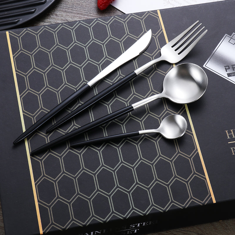 Chaque ensemble comprend les quatre parties principales de la table - couteau, fourchette, cuillère à soupe et cuillère à dessert. Cette harmonie parfaite garantit que chaque repas est accompagné de l'ensemble complet d'ustensiles nécessaires, ajoutant une touche pratique à son élégance.