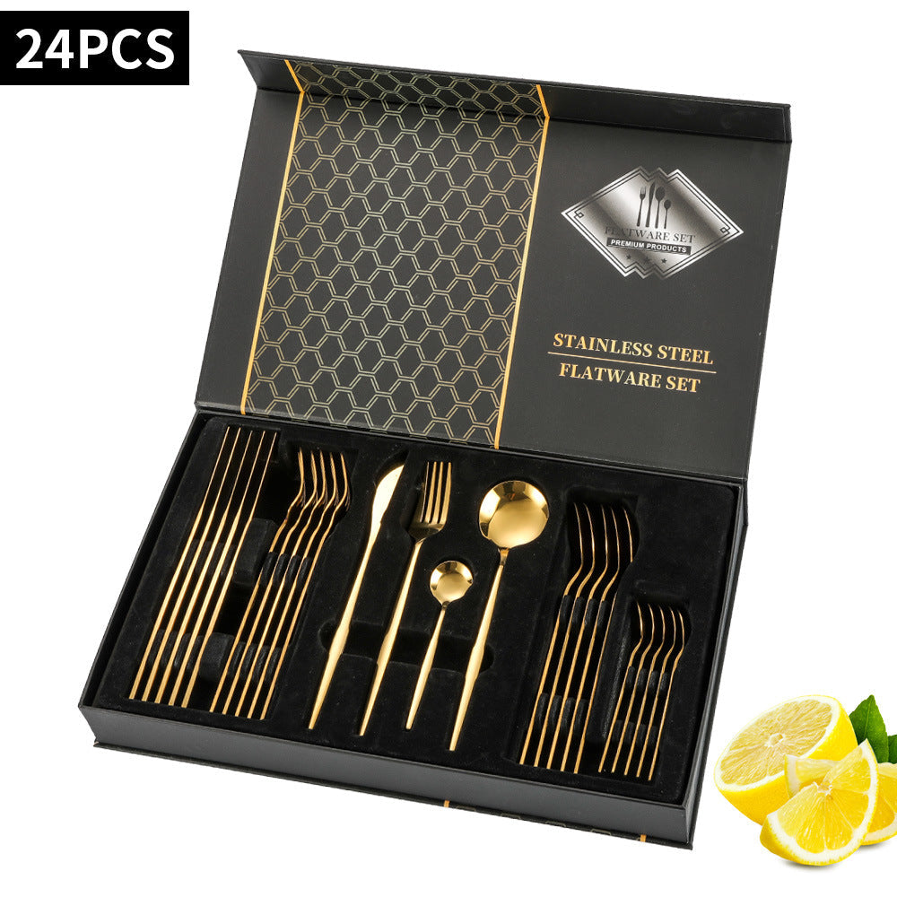Cet ensemble de table en acier inoxydable 24 pièces offre une qualité supérieure dans chaque détail. Fabriqué en acier inoxydable résistant, chaque pièce présente une finition impeccable qui ajoute une touche d'élégance à votre table à chaque repas.