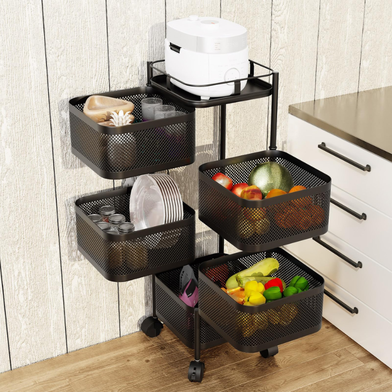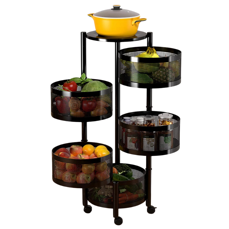 واش باغي تنظم مطبخك بطريقة سهلة وأنيقة؟ هاد الحامل الدوّار 5 طبقات غادي يخليك تستمتع بمطبخ مرتب ومنظم فثواني!